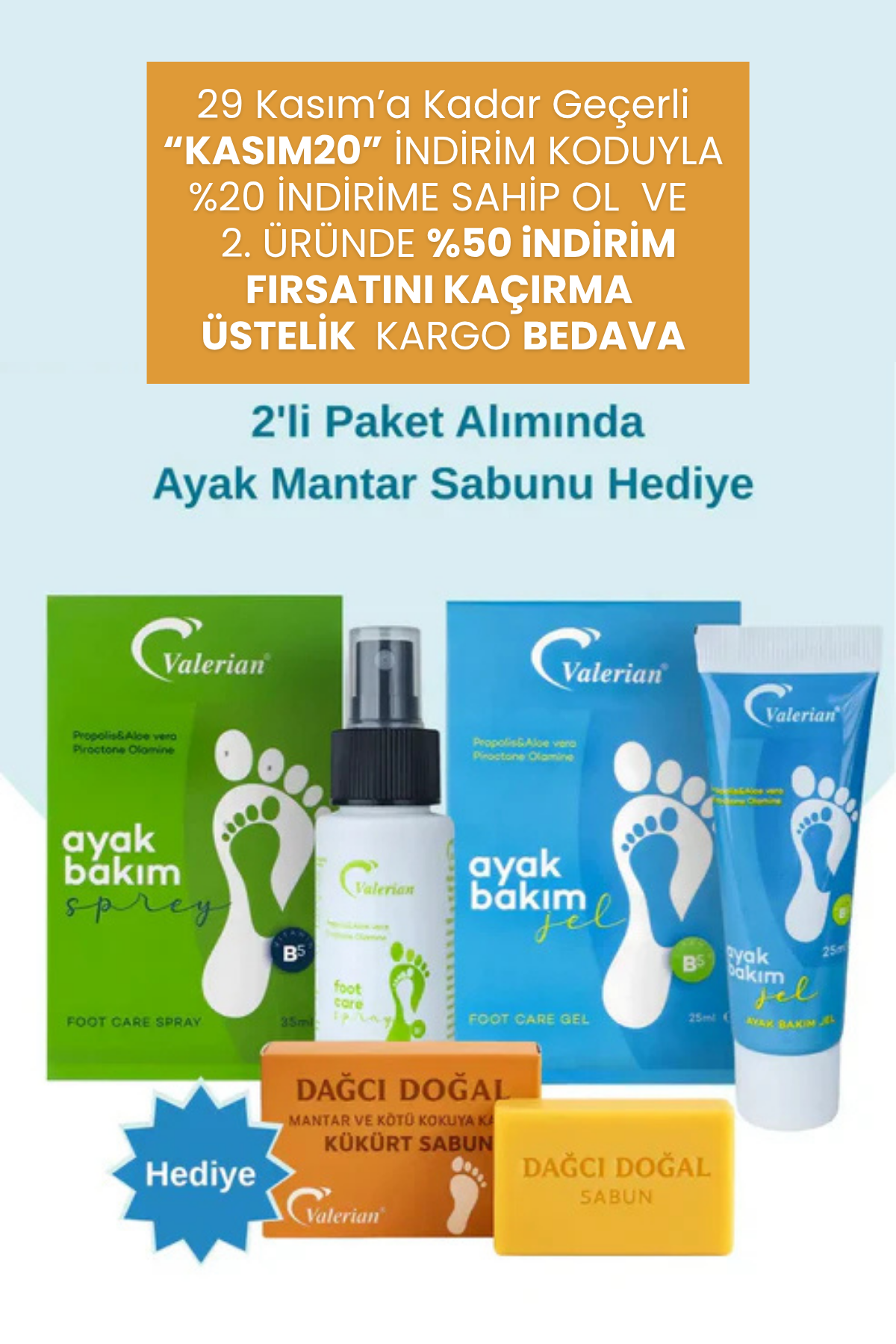 Valerian Ayak Spreyi ve Jeli ile ayak sağlığınızı iyileştirin. 500TL Üzeri Kargo Ücretsiz